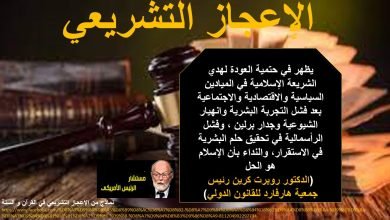 يعرف هذا الإعجاز بحتمية العودة لهدي الشريعة الإسلامية في الميادين السياسية والاقتصادية والاجتماعية بعد فشل التجربة البشرية وانهيار الشيوعية وجدار…
