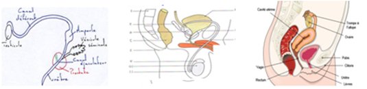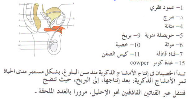 لا تشكل الحيوانات المنوية إلا حوالي 5-2 % من السائل المنوي، والباقي يتم إفرازه من طرف الغدد الملحقة وعضيات أخرى تتواجد على مستوى الحوض كله عند الرجل، وَصَفَها المولى عزّ وجل بقولِه: {مِنْ بَينِ الصلب والترائب} والمقطع الجانبي لمنطقة الحوض تبين هذا الإعجاز الكبير .