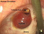 ينفجر الجريب الناضج على مستوى المبيض محررا الخلية البيضية وما يصاحبها من خلايا جريبية وغيرها في تدفق بمشهد إبداعي..