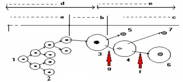 7ـ كرية قطبية ثانية6ـ بويضة5ـ كرية قطبية أولى4ـ خلية بيضية II3ـ خلية بيضية I2ـ منسليات بيضية1ـ منسليات أصلية