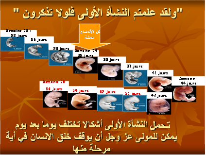 النشأة الأولى تحمل أشكالا تختلف يوما بعد يوم يمكن للمولى عز وجل أن يوقف خلق الإنسان عند أية مرحلة منها.